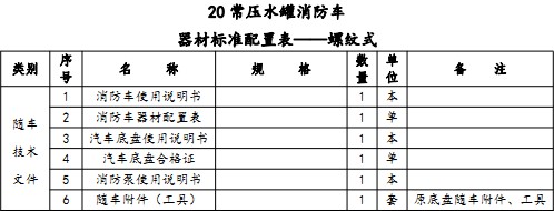 3)底盤質量保修卡 9)消防車消防器材清單